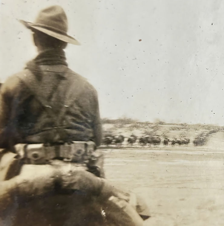 The Mexican Revolution started in 1910, prompting America to reinforce its border with Mexico. The build-up included the US 13th Cavalry, along with other cavalry units. This added strength was to protect border towns from roving bandits such as Poncho Villa. This also safeguarded America’s sovereignty due to the lawless environment in Mexico. America further increased its border forces after the ‘Zimmermann Telegram,’ a correspondence sent from Germany to Mexico, proposing a joint alliance to fight the United States. The US 13th Cavalry continued to patrol the desert landscape of the Mexican border on horseback until 1921.